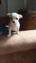 Продам щенка чихуахуа, девочку, окрас белый, с палевыми пятнами на спинке и палевым оттенком ушей. Уши стоят, в экстерьере собаки нет недостатков, она привита по возрасту,-два месяца, воспитана, ходит в туалет, вскоре собирается на прогулки. Родители имеют родословную FCI.